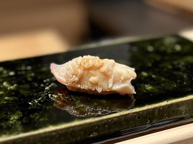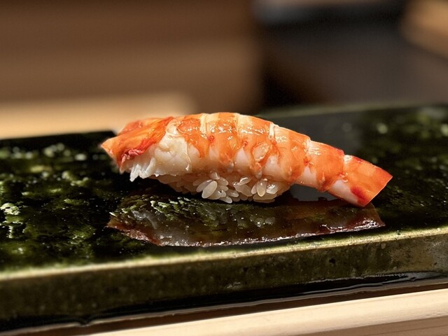 鮨ネタで1番好きなエビが出たのですが、人生で1番美味しい海老に出会え感動!飲み込むのがもったいなくてずっと味わっていたいと思ったのは人生で初めて!!!笑 今まで何万食も食べてきたけど、素材を昇華させてお食事で感動させるってやっぱり職人技次第だと思うので、この時点で大将を尊敬しました。