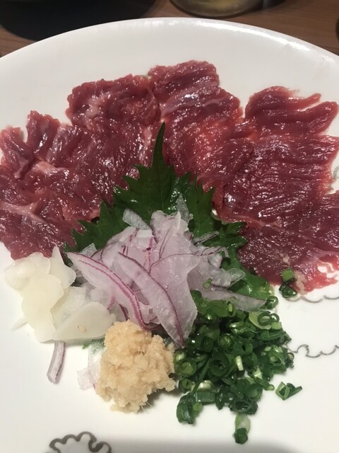 その前に注文したのが、イカ!馬刺し!ゴマ鯖、明太子! もつ以外も、クオリティが高すぎる!