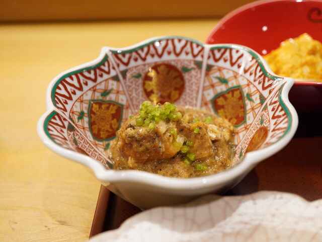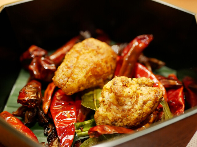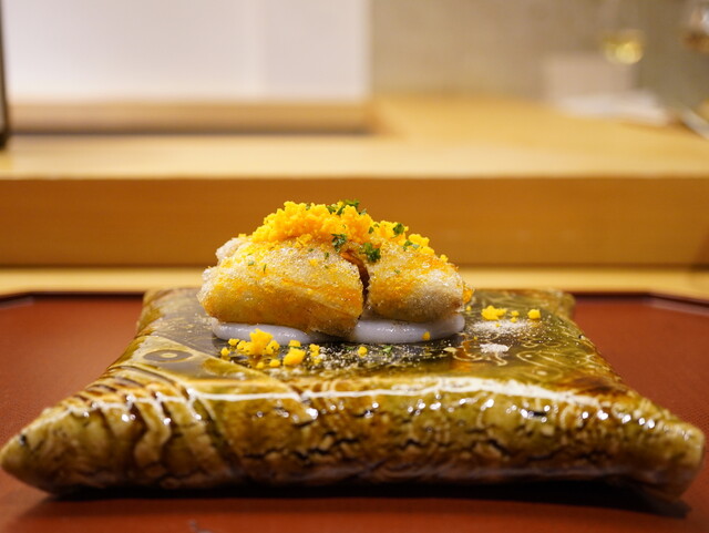 口に放つとサクパリ食感の湯葉を皮切りに、海鰻としたジューシーな旨さで鼻から抜ける香りはしっかりとハーブ香。タイの食文化と日本の伝統文化の融合がみなぎる素晴らしきヒトサラ。