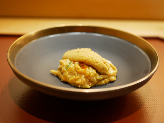 ほぐすほどに香りが解けて華やかさを増し、口当たりに感じる外子の粒感。海老芋の白味噌ピューレとした甘みと香箱蟹のコクと旨味、さらに一体感を添えるトムヤム風味が見事に宿る! 実は今年初めてとなる香箱蟹を美会さんで大堪能!美味い!