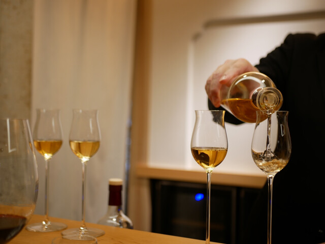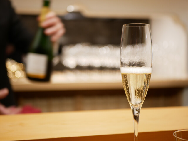 静かな路地でそっと招き入れてくれるのは、銀座時代から従事されているソムリエ様。その懐かしいお顔にほころぶ笑顔が自然と共鳴。