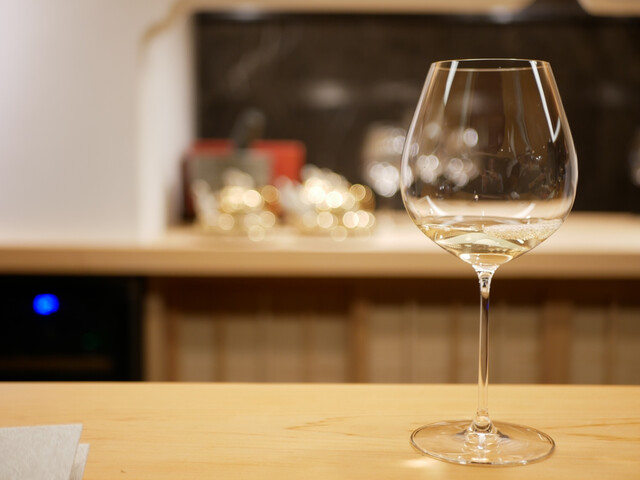 空間に合わせたヒーリングミュージックが居心地を添え、綺麗に並んだワイングラスに心を踊らせる。