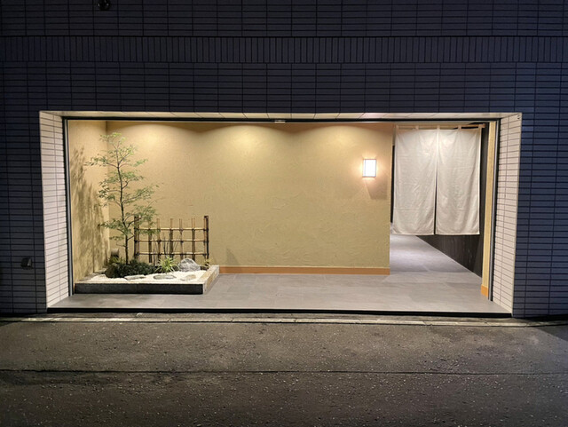 環状通沿いの落ち着いたエリア、しっとりと趣きを伝える店構えに表札が灯されます。