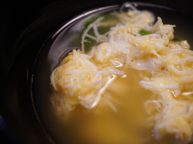 代表的な品はこの日の蟹を使った真薯のお椀。