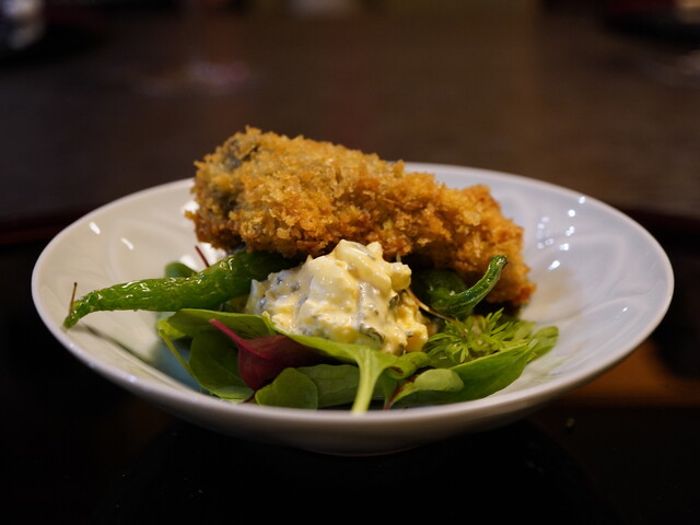 揚げ物は三陸の牡蠣フライと自家製タルタルソースを合わせて。