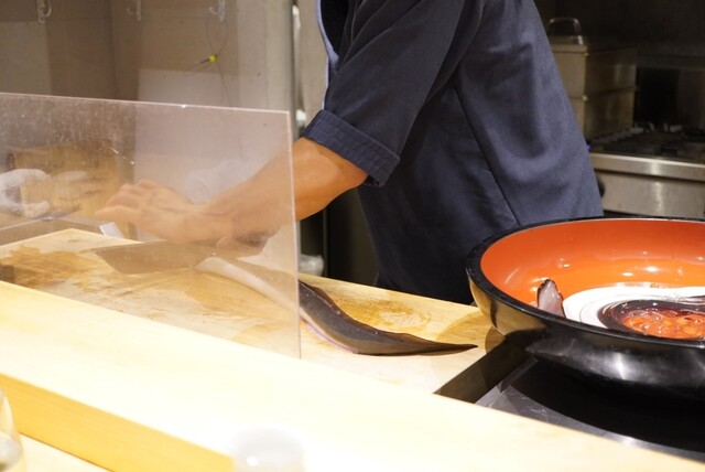 こんな間近で見たことがなかったので、鰻の躍動感と生命力、その反面で職人の凛とした姿勢と技術から伝わってくる一つの命と向かい合う瞬間。