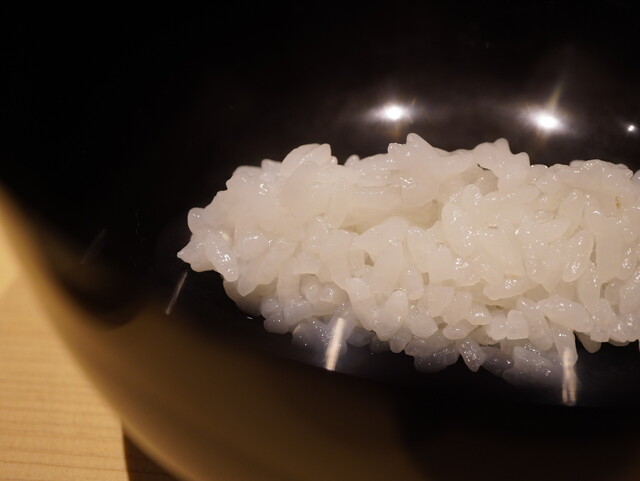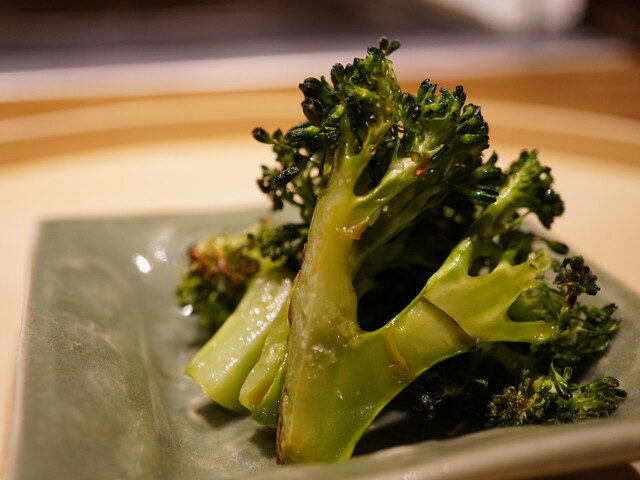 ひと口啜ると、クリアな昆布出汁の中に僅かに感じるえんみ。葛によって滑らかに綴じ込めた白甘鯛の旨みが漲り、薫香を纏った焼き茄子の香りとが出汁の中で自然と調和。椀のなかに起承転結がしっかりと構成されており、全ての素材が一つの料理として見事に生きる。 最高の状態で頂ける幸せに浸りつつ、その滋味深い味わいに陶酔させる。
