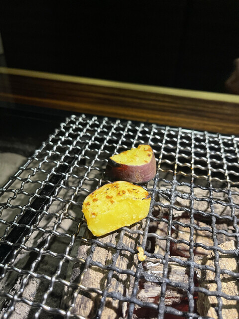 焼き野菜(徳島県産紅はるか・滋賀県産あわび茸) あわび茸はあわびのようなコリコリとした食感 紅はるかはしっとりとして甘みが強い!! バターを溶かしていただきます