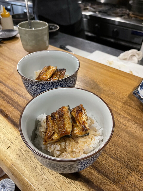 〆は囲炉裏でじっくりと焼き上げた鰻で鰻丼をいただきましました。店主さんが丁寧に焼き方を教えてくれるので皮目はパリッとして身はフワッとした最高の焼き上がりに