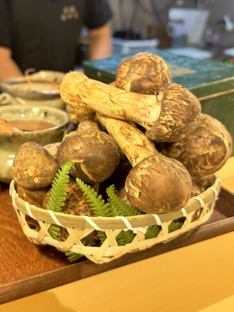 はもかつをミニバーガー仕立てにして、たくあんタルタルを添えた一品に驚き、松茸のおひたしで一気に秋の香りが広がります。