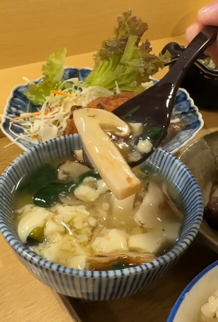 箸を入れるとほろっと崩れるほど柔らかい角煮。甘辛いタレがしっかり染み込んでおり、ご飯が欲しくなる味わい。こってりしすぎず、バランスの良い仕上がりです。