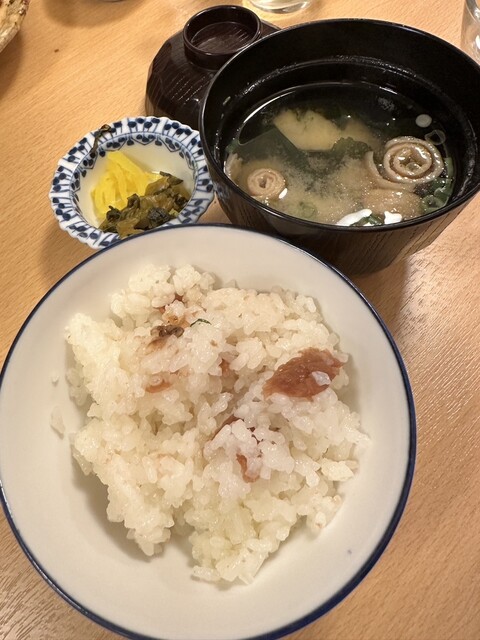 締めは香り豊かな梅バターご飯。土鍋で炊き上げられたご飯はふっくらしており、梅の酸味とバターのコクが絶妙なバランス。しみじみとした美味しさで、最後の一口まで大満足。