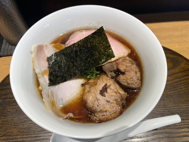 スープをいただくと強烈な旨みが口に広がります。醤油の強い旨みに出汁の強い旨みが合わさって口の中の隅々まで旨みが広がる感じです。この旨みが食後も口に余韻を与えてくれます。麺は細麺のストレート麺で喉越しよく、チャーシューに餡たっぷりの雲呑、味玉も濃厚で美味しいです。チャーシューは数種類の部位のものがどれも柔らかくて旨みたっぷりです。美味しさで幸せな気分でお店出ました。ご馳走様でした。