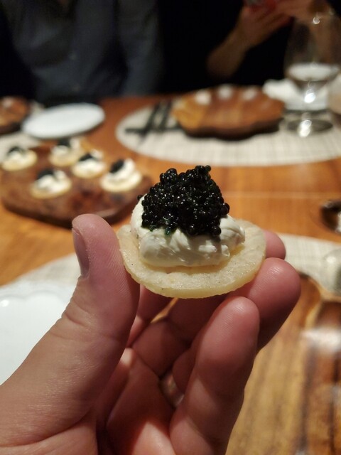 期待値が高いので正直どんな感じなのか食べてみなと分からなかったのですが、最初のキャビアのブリニとクリームチーズペーストをいただいた瞬間に今までいただいてきたビストロ店やフレンチ店とも違う異次元の逸品だとすぐに判明!!