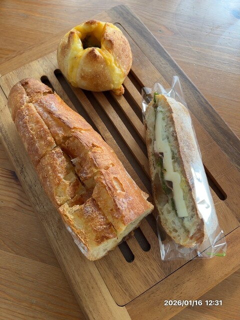 名前はうる覚え バケットガーリックとチーズパンとリュスティックサンドです。