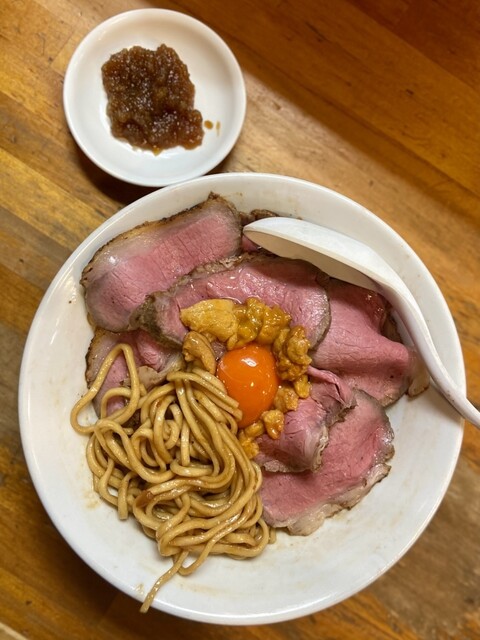 からの上質のローストビーフと雲丹の組み合わせの贅沢トッピングは、ヤバいですね。卵黄もまぜると悶絶です。ローストビーフが良い味出してます。