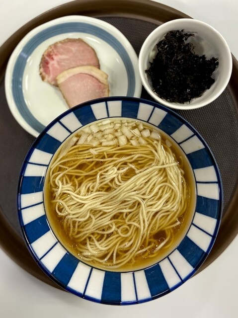 煮干の主張は絶妙に保たれて、この上品な様相の清湯スープは旨味も溢れ、相変わらず素晴らしいですね。