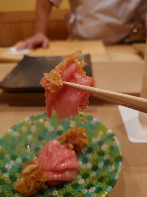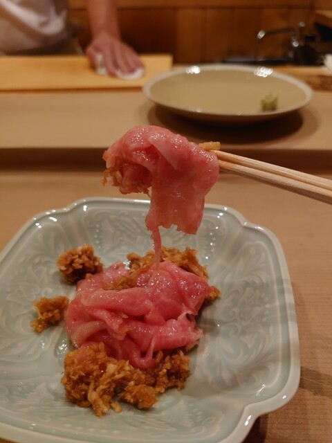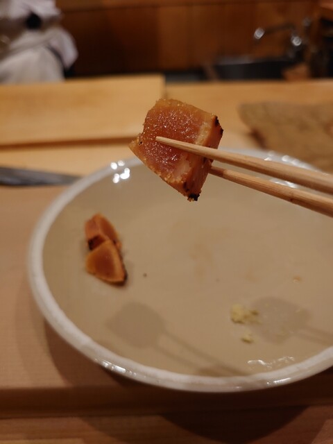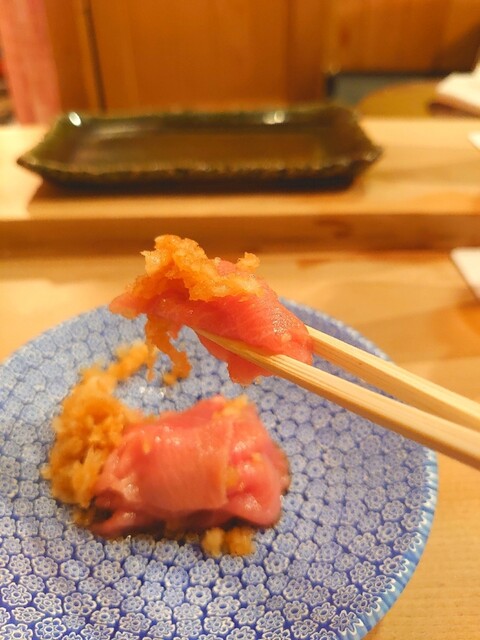 今回はおつまみと握りでいただいた大間のトロはがしが抜群に美味しかった