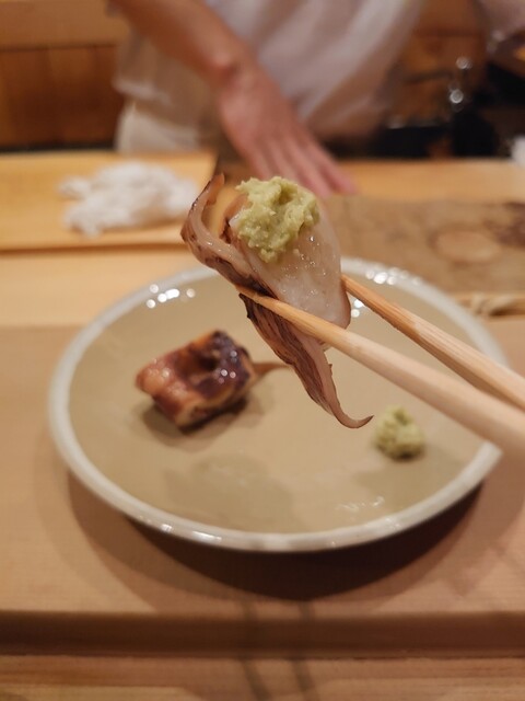 おつまみではほろほろで旨みのある白甘鯛、握りでは縞鯵が特に美味かった