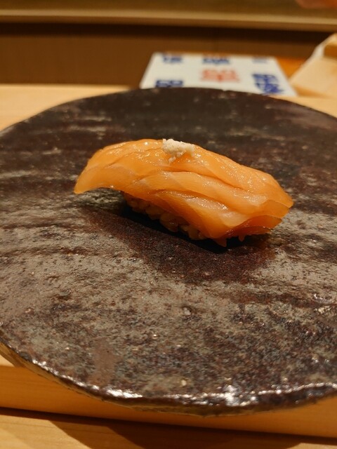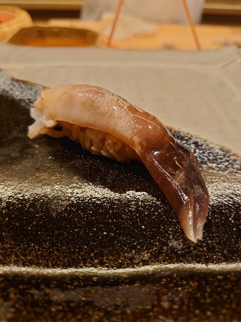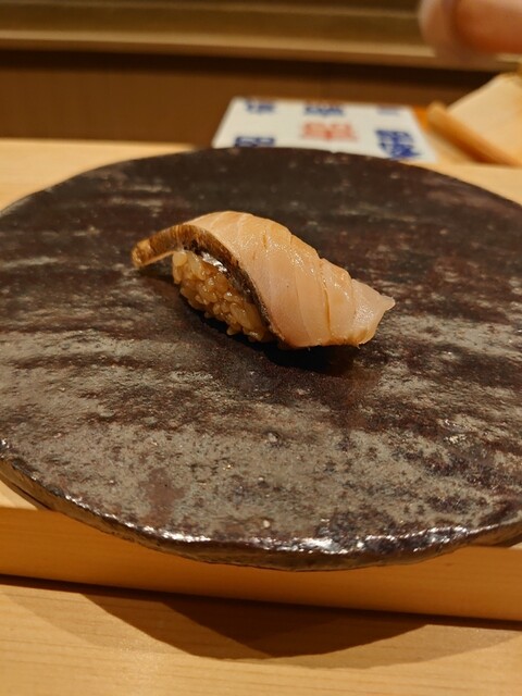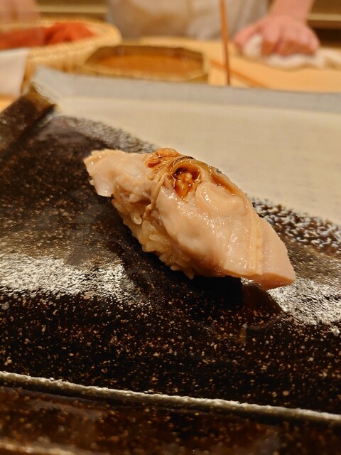歯応えの良い縁側、香りが楽しめる赤貝そして燻され旨味のある鰆と鮨飯が実に合う