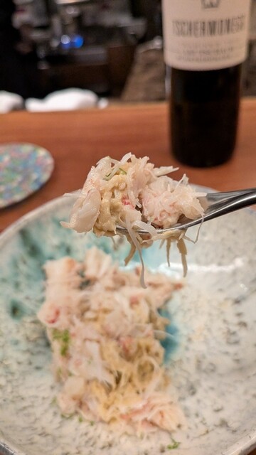 ◊毛蟹 オイルアンチョビ和え 毛蟹の味噌のクリーミーソース