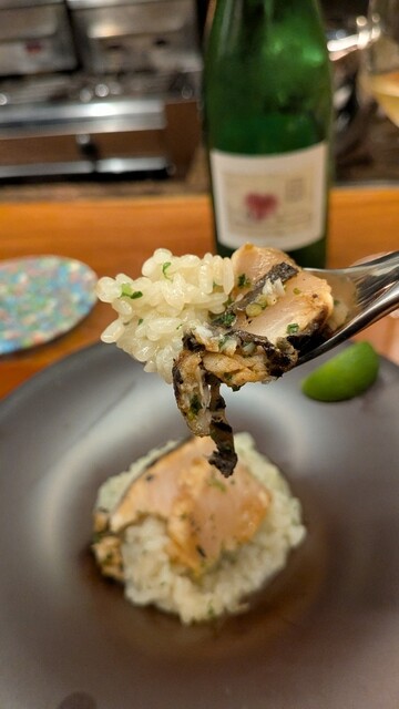 ✡塩水雲丹、ミル貝、ハリイカ、新海苔、ウスイエンドウ リゾット