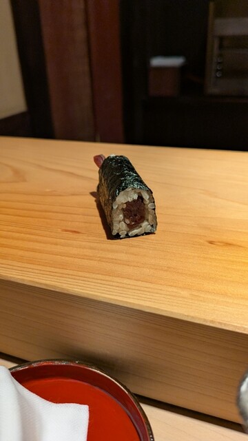 追加でいただいた柔らかくて磯の香りが鼻から抜ける鮑、そしてこの日のいただいた大トロと赤身の鮪巻きで〆させていただきました