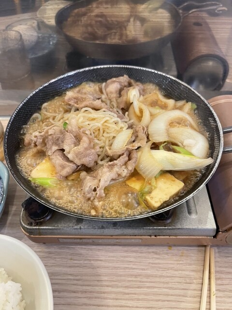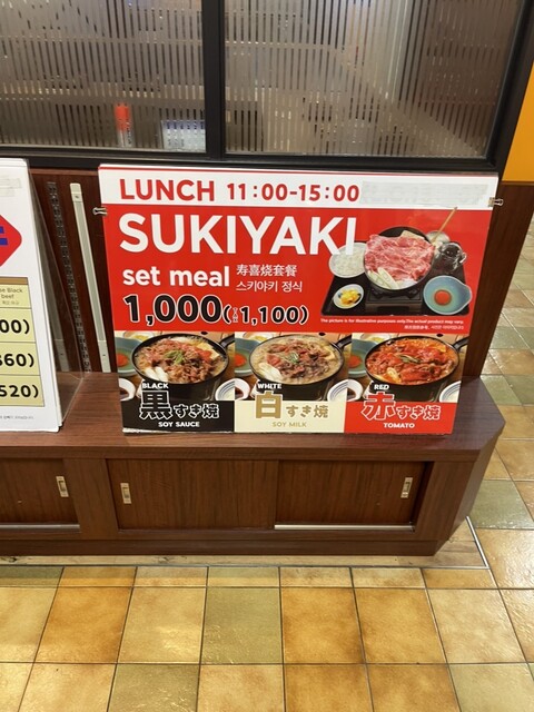 梅田での仕事の帰り、一人ランチで阪急三番街に行きました。三番街地下に降りて、すぐのこちらのお店の一人スキヤキに惹かれて入店しました。