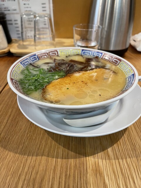 まずめっちゃ安い。それに美味い!ここは長崎県発祥のラーメン店みたいですが、程よい豚骨で、細麺に出汁が絡みついてええです。隣の人は皿うどん食べでました。