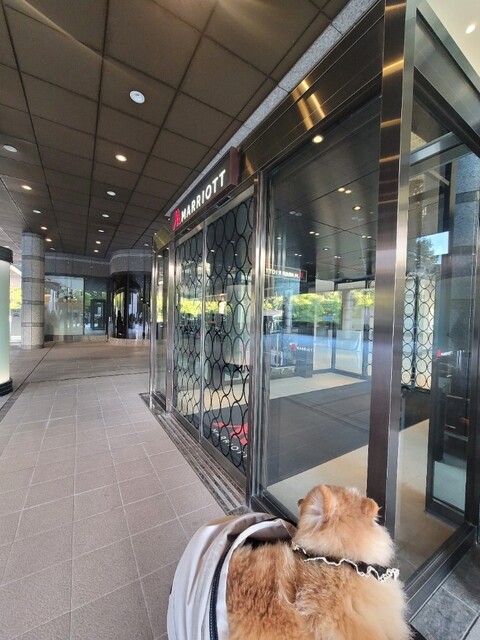 犬を飼い始めてから犬連れで行けるレストランを探してあちこち出かけていますが、こちらのマリオット東京の1階のレストランのテラス席が犬連れ可とのことで以前も何度か犬連れで伺いました。今回は近くを散歩した後お茶へ。