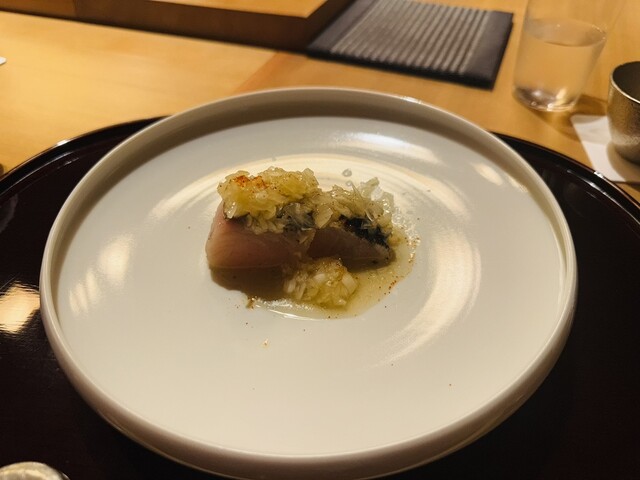 印象に残ったのはさわらの炭焼き。炭火の強い火力で一気に熱されたさわらは、皮目が驚くほどパリッと香ばしく、身には瑞々しさが閉じ込められています。炭の香りが素材の味を引き立てる、力強くも繊細な一品でした。