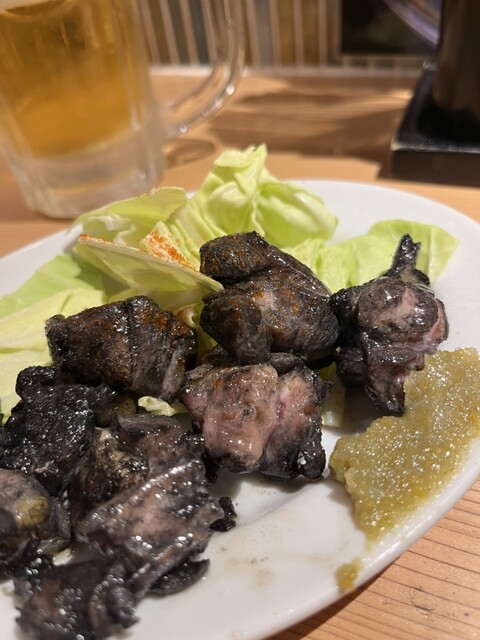 安い!そして美味い!一串がそれぞれボリュームがあるので嬉しい。特に砂肝には驚いた。焼き加減も良くてジューシーで柔らかさをしっかり残している。鮮度が良いんだろうな。