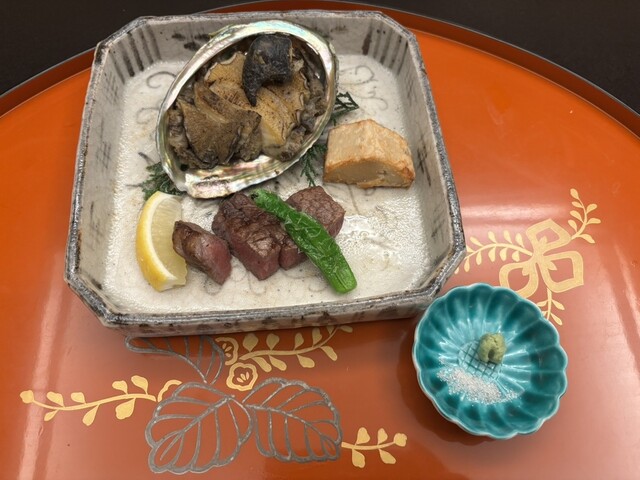 そしてメインの焼き物は黒鮑と但馬牛。