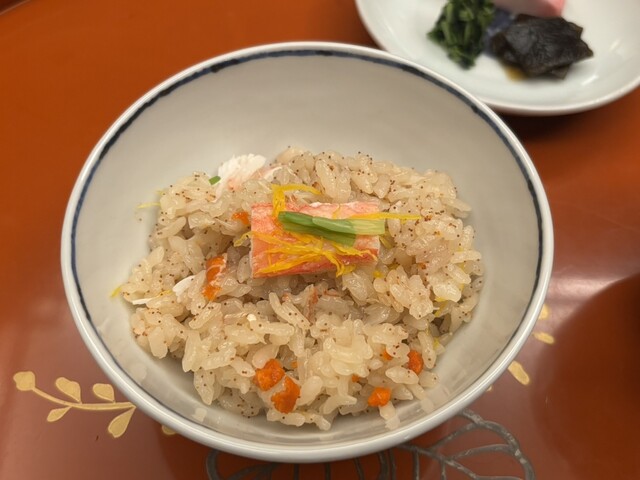 〆のご飯は竹茂楼さん定番の鰻の蒲焼のセットですが、季節の〆のご飯はセコガニの釜炊き。
