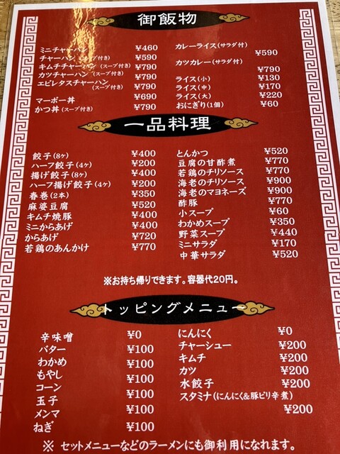 色々悩みましたが無難にラーメンに。