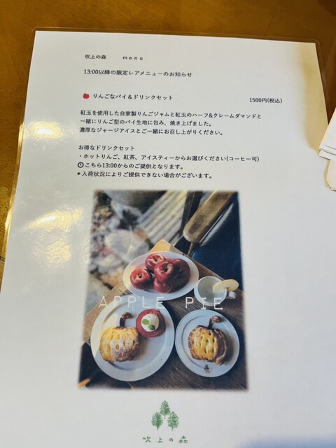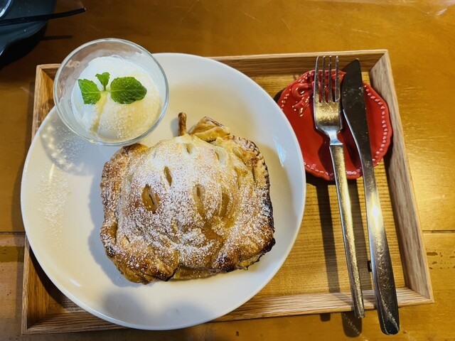 理由は、ここの絶品アップルパイが13時から提供なんです。それとほっとりんごです。