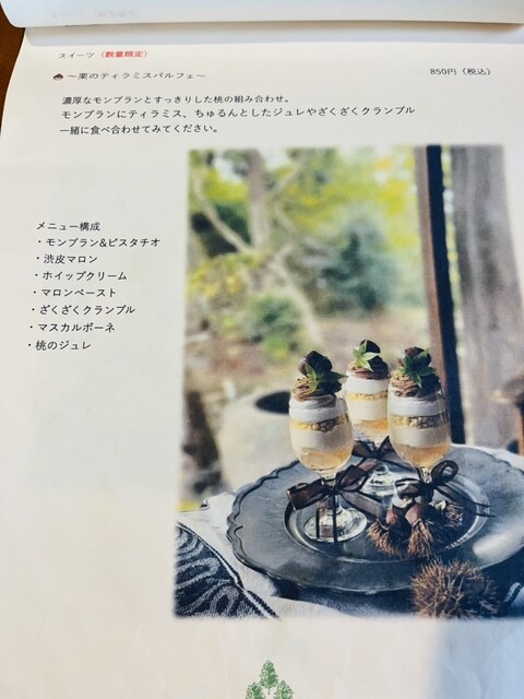 渋皮栗や、マスカルポーネ、モンブラン&ピスタチオ、そして桃のジュレ♡サイコーのパルフェ!