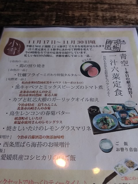 友人達と松山の温泉に行こうと今治経由にて松山に向かっていた時、友人が美味しいお店があるよーって連れてきてもらった『青空食堂』さん