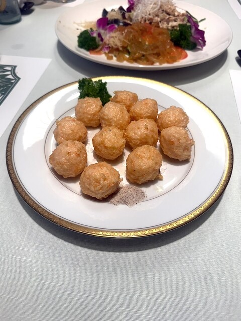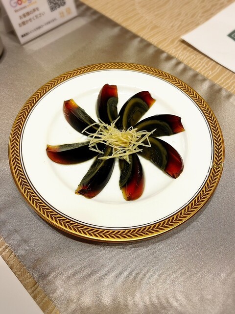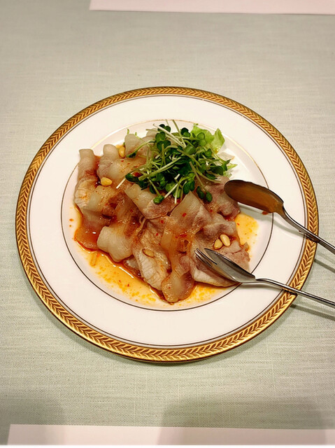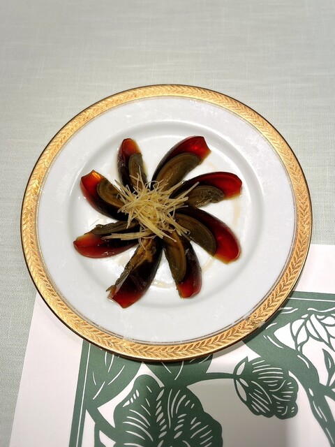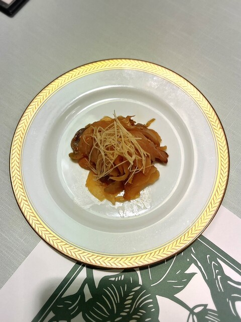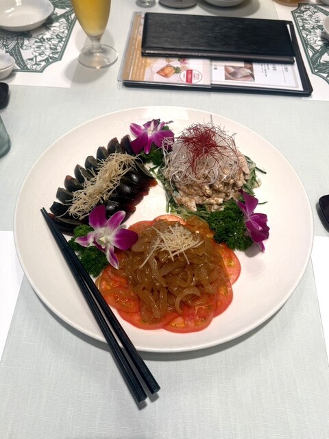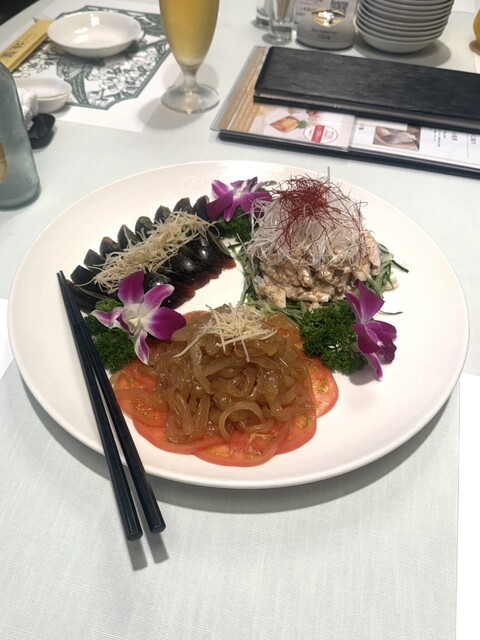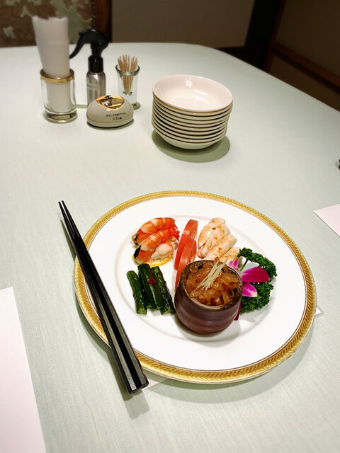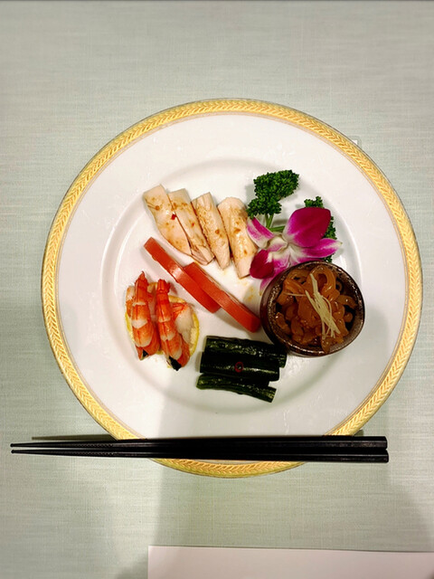 前菜盛り合わせです。 クラゲの酢の物、冷製アワビ、鴨、蒸し鶏、海老でした(o^^o)