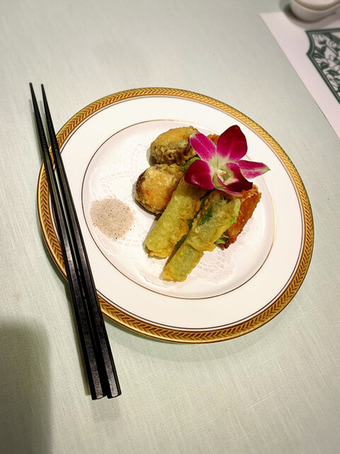 湯葉春巻に野菜と魚の天婦羅が供されました(o^^o)