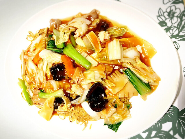 餡のとろみ感と味付け、麺の焼き加減、野菜のシャキシャキ感が絶妙な餡掛け焼きそばです(o^^o)