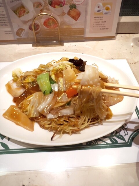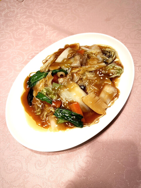 麺に焼き目をつけた具材豊富な餡掛け焼きそばです(o^^o)