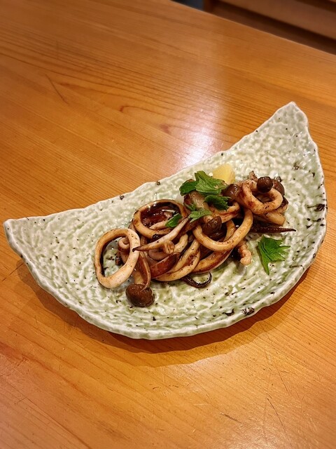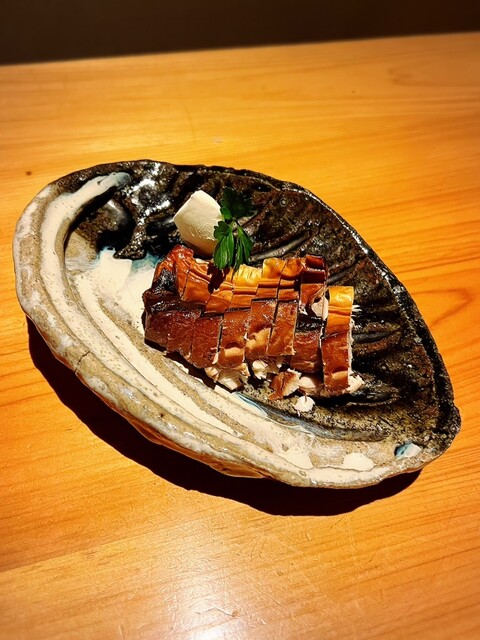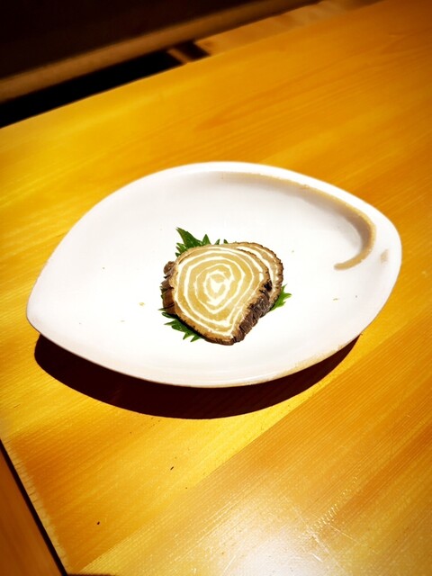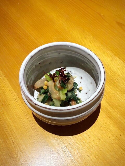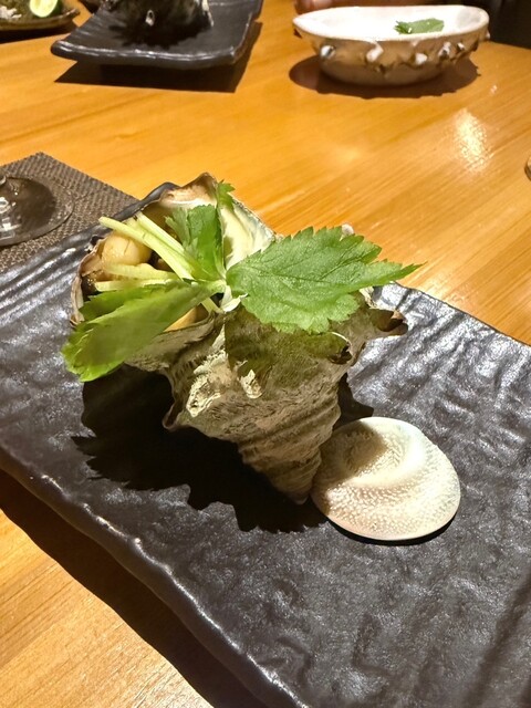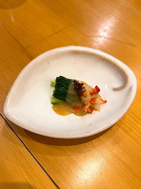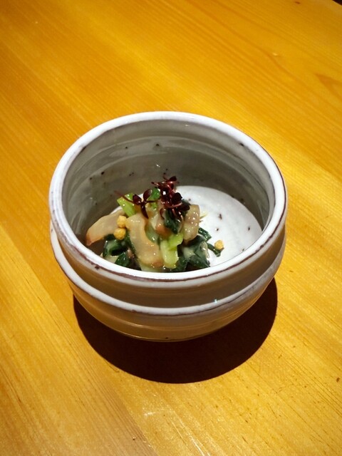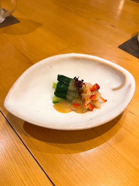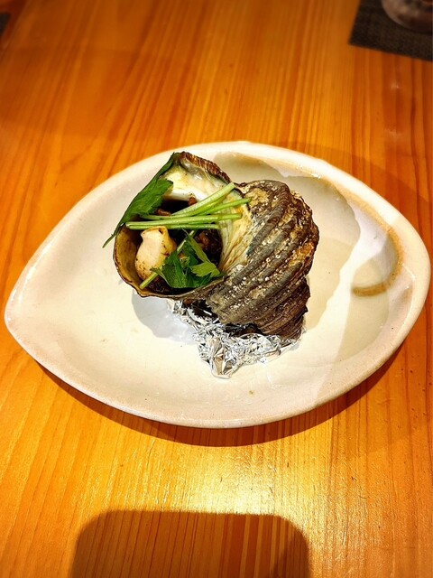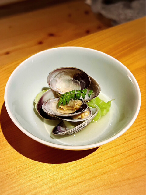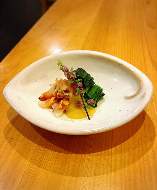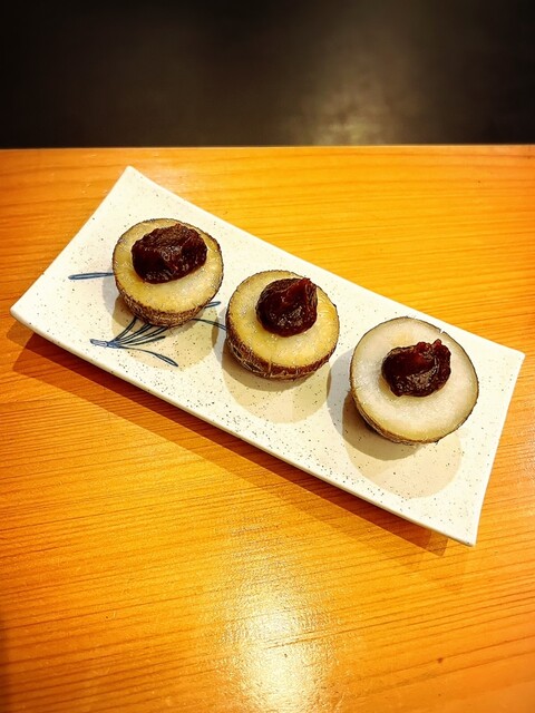 • お通しは『バイ貝の煮付け』と『安納芋のクリームチーズ和え』でした(o^^o)お通しにも店主の真心が感じられます。