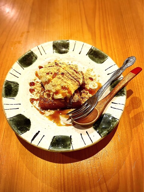 • 揚げパンにバニラアイスを乗せてきなこをたっぷり振りかけた絶品和スイーツです(o^^o)