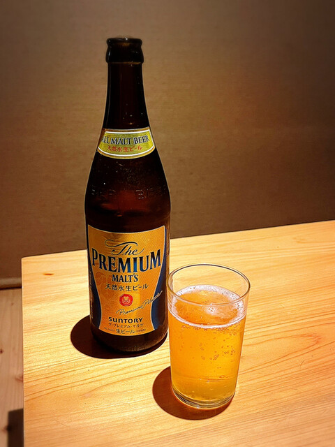 私はプレモルの瓶ビール、友人2人は生ビールを注文しました。