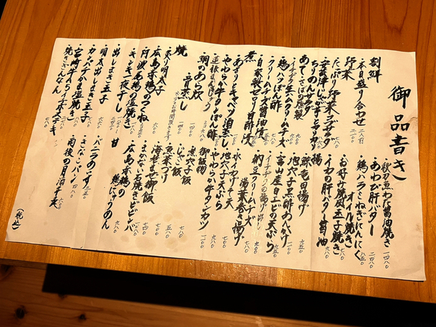 「大将、女将、先日はお世話になりありがとうございました。まだ2回目の訪問ではありますがすっかり貴店のファンになりました。心のこもったお料理はいずれも美味しかったです。次回も楽しみにしていますのでよろしくお願い致します。」m(_ _)m