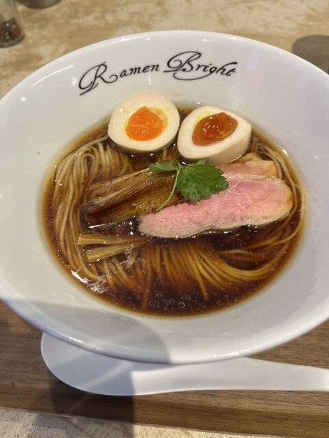 綺麗なスープ、鴨出汁が香る。麺も自家製。