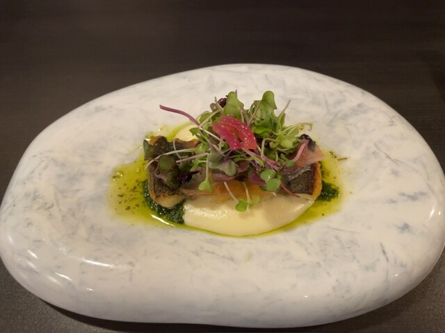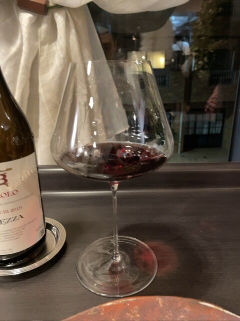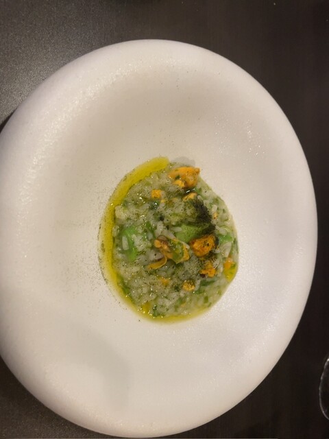 ミシュラン一つ星。自身最高得点のレストラン。飲み物は最初はグラスのスパークリング。とても複雑で濃厚。おつまみのアンチョビオリーブはアンチョビがしっかり効いてて美味しい。ワインと一緒に美味しいです。次の難しい漢字が読めなくて検索したら、スッポンでした。次は、メニューに書いてないモッツァレラチーズ。一口で食べるようです。言われた通り一口で食べました。これは信じらんない味。あまりにも美味しすぎる。もはや芸術。こんなチーズ初めて食べた。柔らかすぎる。甘い。ほどよく塩味もあり、もう至高の舌触りと味。究極のチーズという感じでした。チーズをここまで昇華できるなんて神業。一口でこんな至高の思いをさせてくれるなんて。次、キャビアと白海老のカッペリーニ。キャビアの塩っぽさと甘エビの甘さが化学反応した贅沢な味。これほどキャビアが載っているのは贅沢。次、ポルチーニの入ったスッポンの茶碗蒸し。オリーブオイルが効いている。そして優しい味。洋風茶碗蒸しは2度目。そしてスッポンも2度目。オリーブオイルでしっかりフレンチではなくイタリアン感を出している。しかし落ち着く味でもあり、心地よい。次、鰻のポワレ。下にはジャガイモのピューレ。グアンチャーレも乗っている。鰻とイタリアンの化学反応がすごい。しっかり鰻の味もし、じゃがいもも単体でしっかりしていて、そして上質なバジルの味。白ワインはスッキリ。リグーリアのワイン、ヴェルメンティーノ。りんごを思わせる優しい味わい。調理中もいい匂いがしてくる。次は、ポルチーニ。周りにフルーツのカキ。ナッツとクリームチーズの味がしっかり絡まって感動の味。フォカッチャもすごいしっかりシードも効いていて、上質なフォカッチャ。ポルチーニ茸はカキと共に食べてもいい感じに酸味のアクセントが効いて美味しい。フランス モンサンミッシェルのムール貝のリゾット。下にはモロッコインゲン。どこか懐かしい味がする。そしてやはりこれもオリーブオイルが効いている。そしてメインの短角牛のカツレツ。付け合わせのカポナータの茄子が渋くて渋くてすごい美味しい。食べたことない味のナス。最高すぎる。サラダもすごい美味しい。前評判通り、肉の中に水分がギュッと詰め込まれていて、確かに技術が必要なのだと思う。至高のカツレツ。赤ワインもすごい美味しい。肉はやっぱり最後の一口、大きめのブロックで食べた時が最高に美味しい。大きく食べると最高。次の赤パプリカも最高の味です。締めのタヤリンは少なめの15g、通常の30g、多めの45gから選べます。私は45gにしました。上にはなんと細切れにした栗が乗ってます。こんなの初めてです。このボロネーゼと共にいただく赤ワインは最高。栗がいい香りと味を引き立てる。そして挽肉も最高。挽肉ソースが美味しすぎてスカルペッタしたいくらいです。ワイン3杯飲みましたが、どれも美味しかったー。ドルチェは、シャインマスカットと和梨のすりおろし。最後の最後は三宅島のパッションフルーツソースをかけたヨーグルト。タネが美味しい。ヨーグルトもそんじょそこらのヨーグルトと比べ物にならないクオリティで最初から最後までもう凄すぎます。神の御業。本当に美味しい高級店は、スイーツだけでもスイーツ専門店なんか目じゃないくらいスイーツまですごいですよね。最近感じます。最後のドリンクはエスプレッソにしました。エスプレッソ、アメリカーノ、カプチーノの3種から選べます。ヨーグルトが最後の最後かと思ってたら最後の最後の最後にカヌレまで来ました。なんだよ、カヌレすらカヌレ専門店の数億倍美味いじゃん。なにこれ。コーヒーが効いてる。そして卵黄の味わいをかなり感じる。もう声出た。カヌレなんてどうせ相場は決まってるでしょと思ってた矢先にこれですもん。卵を感じさせられるか否かが一流とそれ以外の違いなのだろう。最高すぎるコース料理。最高じゃない料理が1つもなかったです。どのお店も1つくらいは最高とまではいかないものが1つくらいは出てくるのが今まで経験したところなのですが、今回は最初から最後まで最高でした。人生最高なのはもちろん。いやびっくりしますよそれは。スイーツ専門店よりどのスイーツも何段階も美味しい。全ての料理に目ん玉飛び出そうになるほどのリアクション見せたのは初めててです。食における至福とはこういうことなのかと実感しました。ちなみに接客ももう言うことないくらい完璧です。