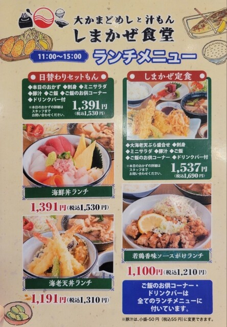 メニュー見たらまた行ってみたいと思った「しまかぜ食堂」さんでした