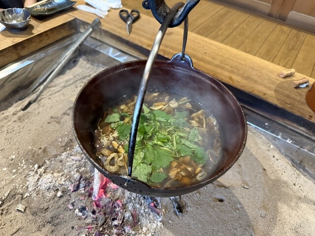 そして、イノシシのヒレとバラを食べると、きのこ汁、うなぎ、ご飯のラストスパート。